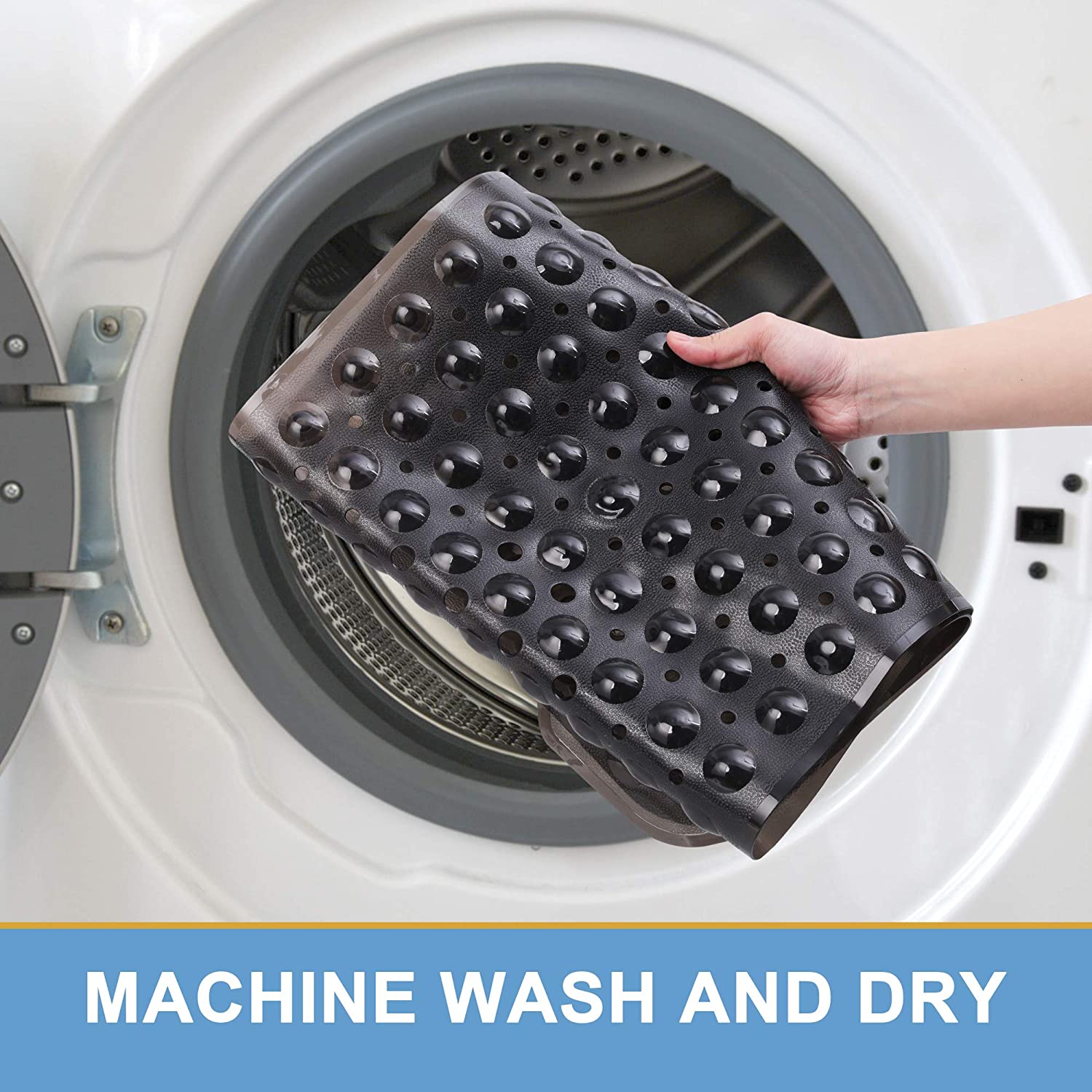 - Easy to Clean and Hang dry – The shower mat can be washed in washing machine. Still remains nice and pliable. After a shower, you can easily rinses and hang it over the edge of the tub to dry.