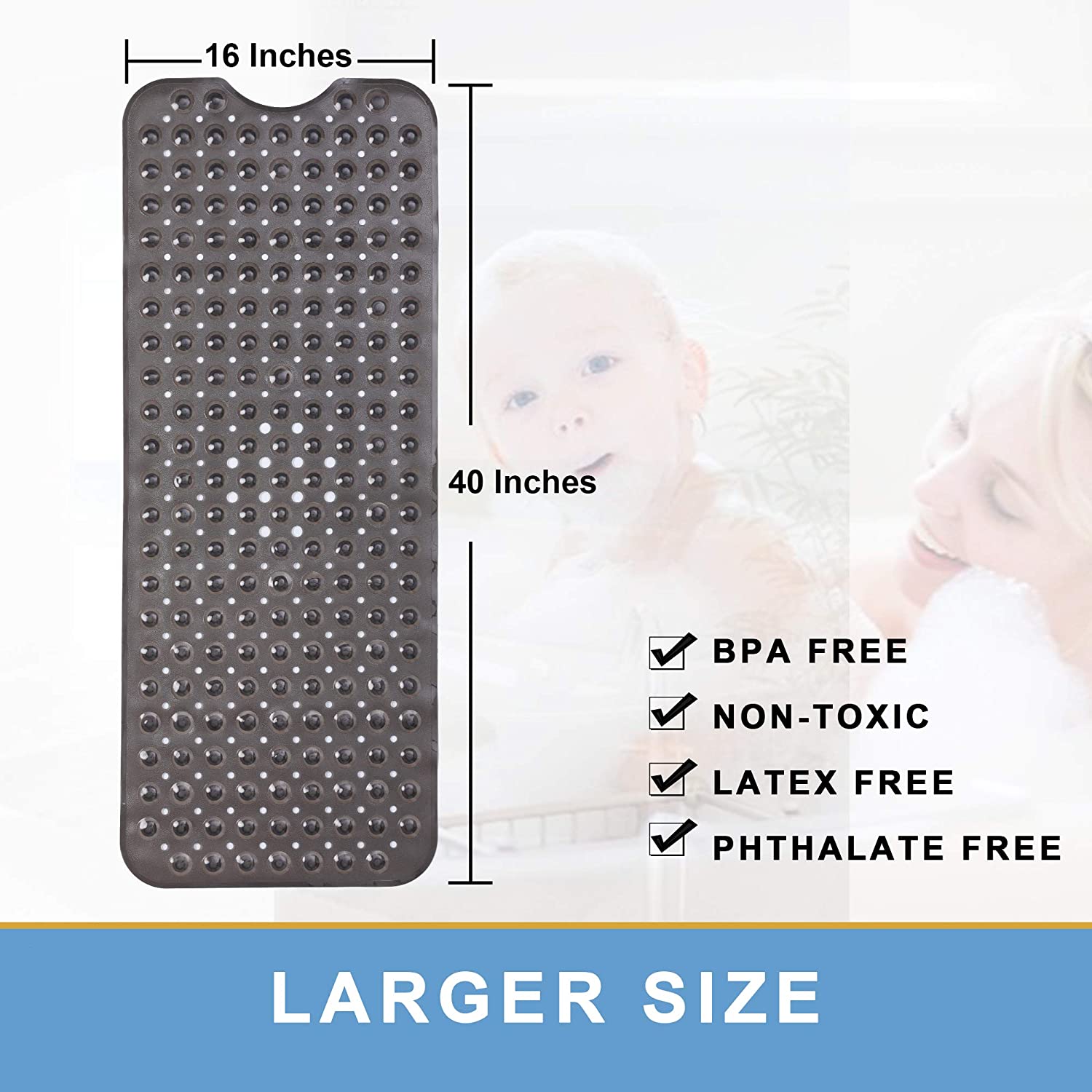 - Large Size Bathtub Mat Fit for Most Tubs – 40″ x 16″ size cover most length of tub. BPA free PPC material, Eco-friendly.