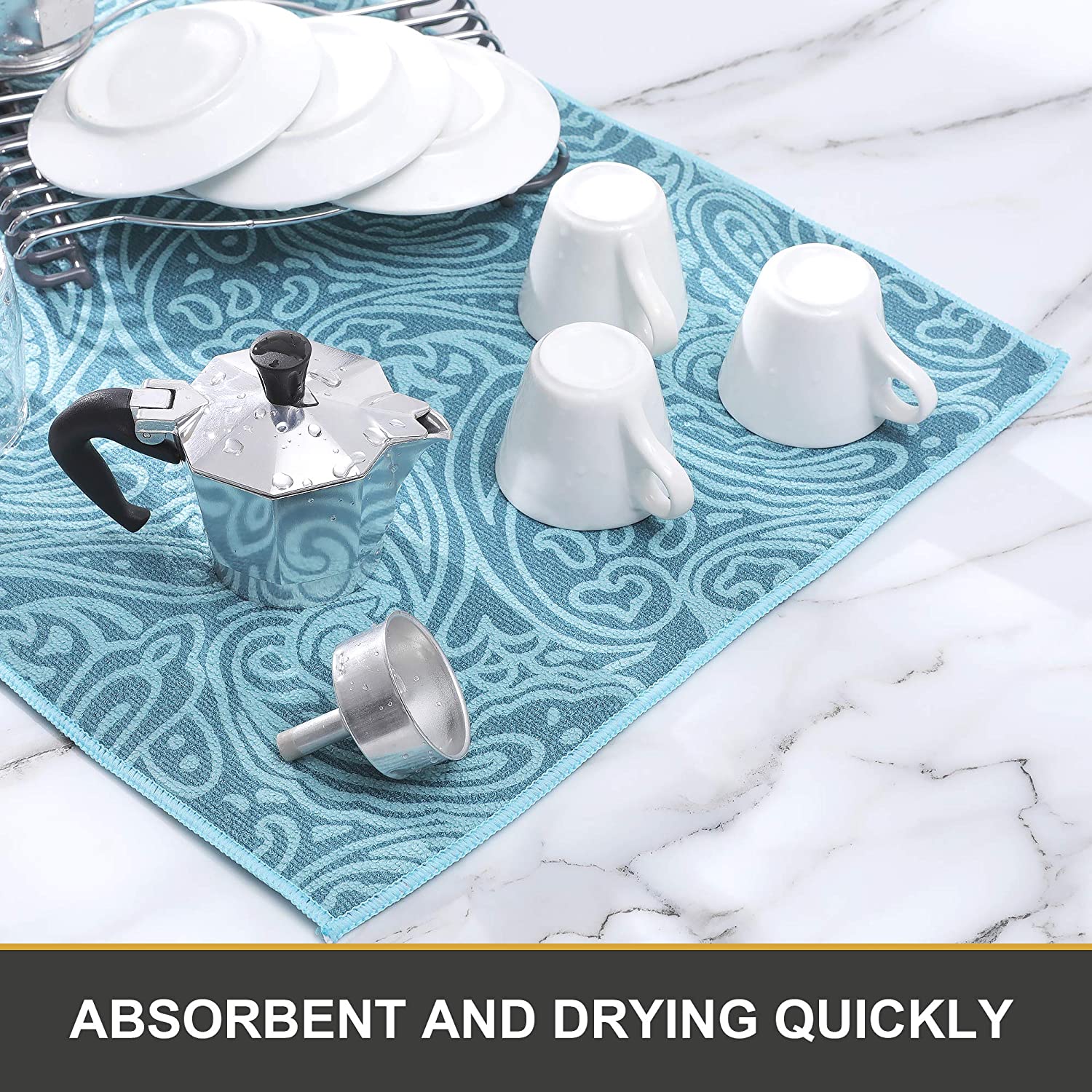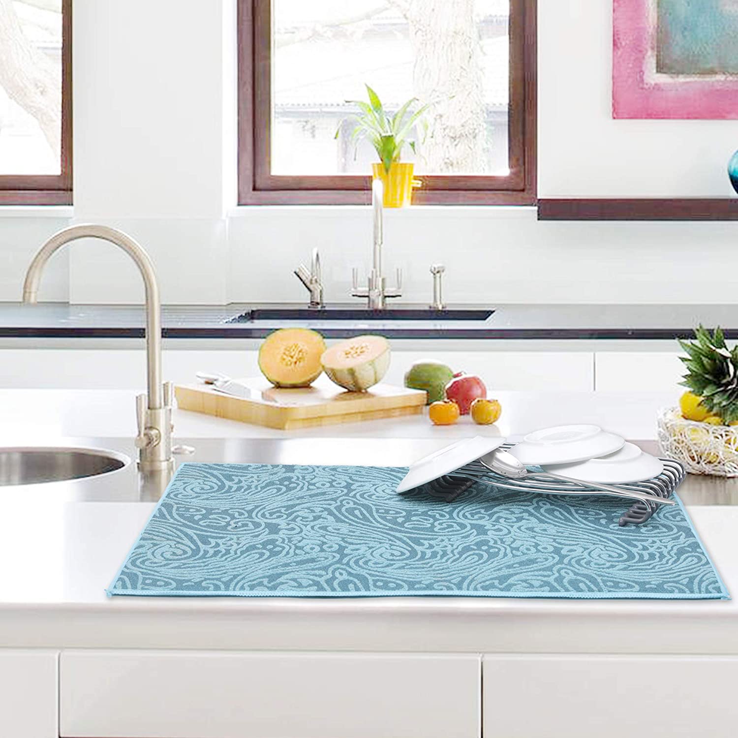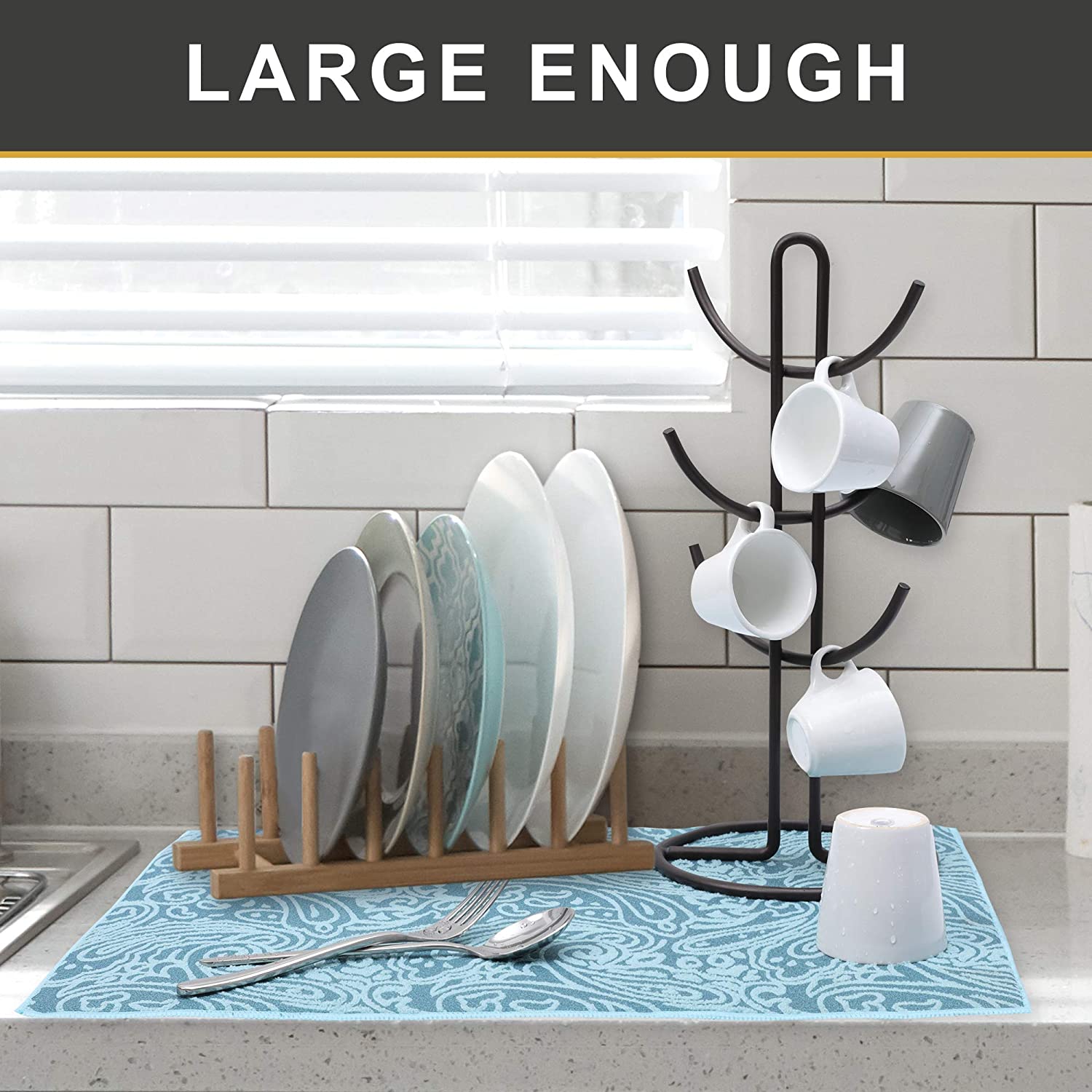 - Large Enough – 15 x 20 inch large size drying mat. Great for larger items or multiple small items to dry. Fitting any countertop space and under any dish drying rack.