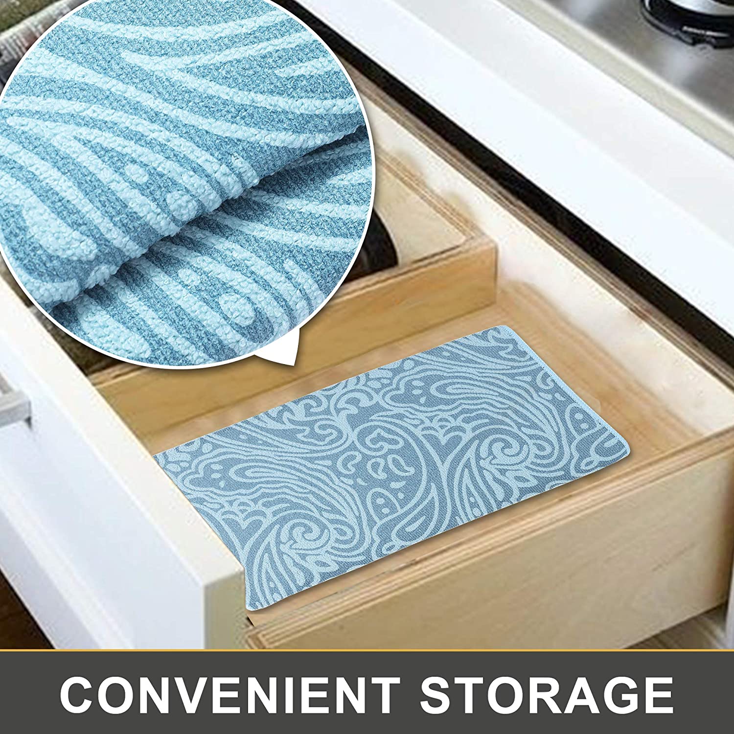 - Easy Storage – Flexible dish drying pad can be folded up and toss in a drawer or tuck it elsewhere when not in use.