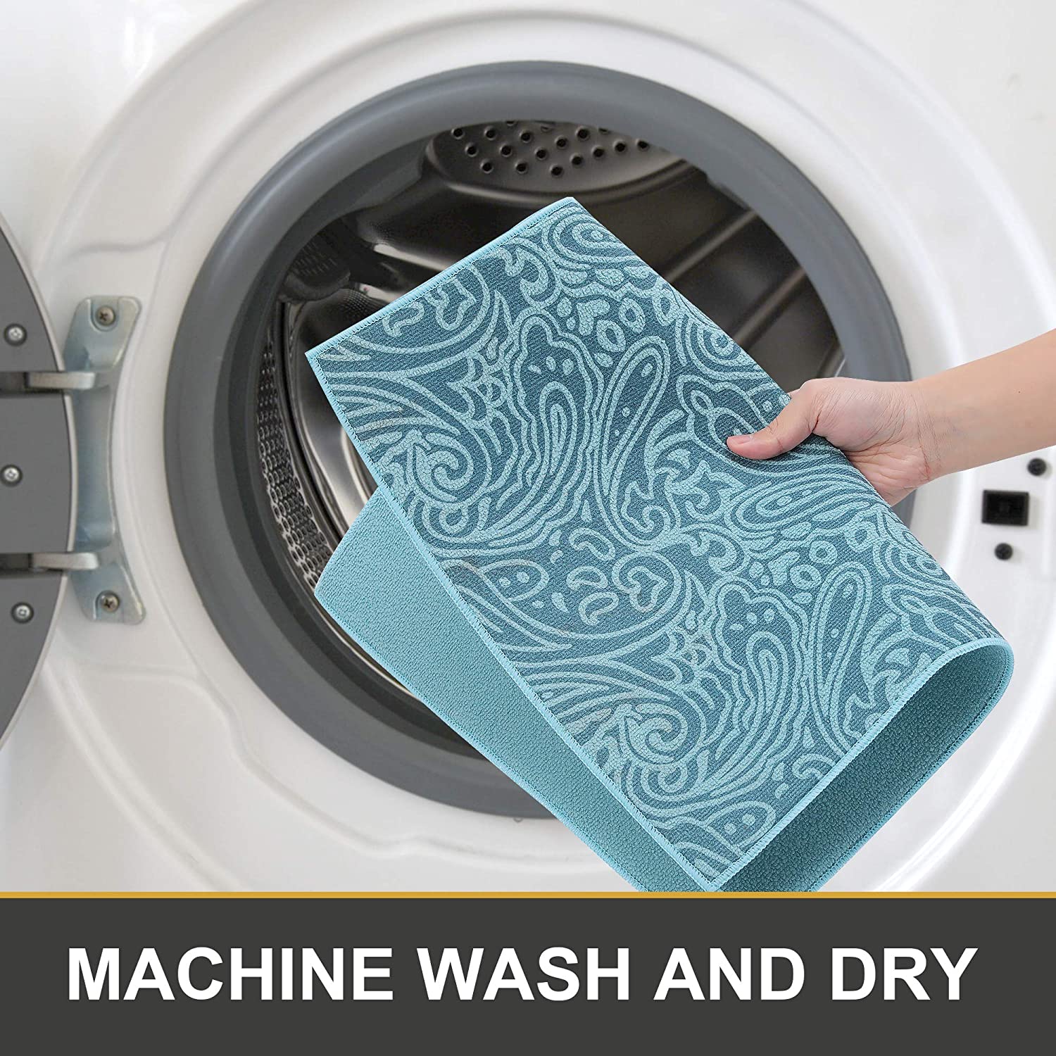 - Easy to Clean & Dry – This dish mat allows you to throw it in the washing machine. Just hang to dry and all set to go again.